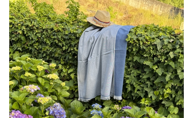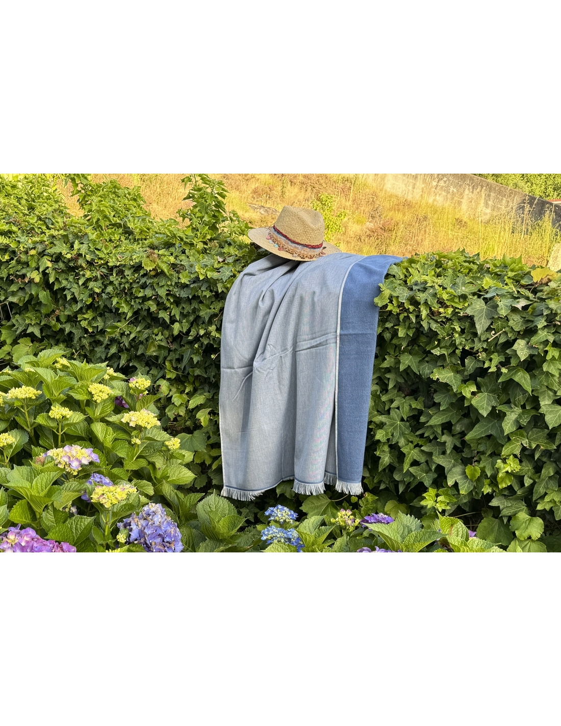 Serviette de plage de type paréo avec intérieur en tissu éponge. L'intérieur en éponge lui confère une bonne capacité d'absorption de l'eau et son tissu fin en coton le rend doux au toucher, confortable et sèche rapidement. Il est réversible et peut être utilisé des deux côtés.