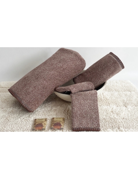 Ensemble de serviettes trois pièces. Serviettes avec bordure à coutures contrastantes.