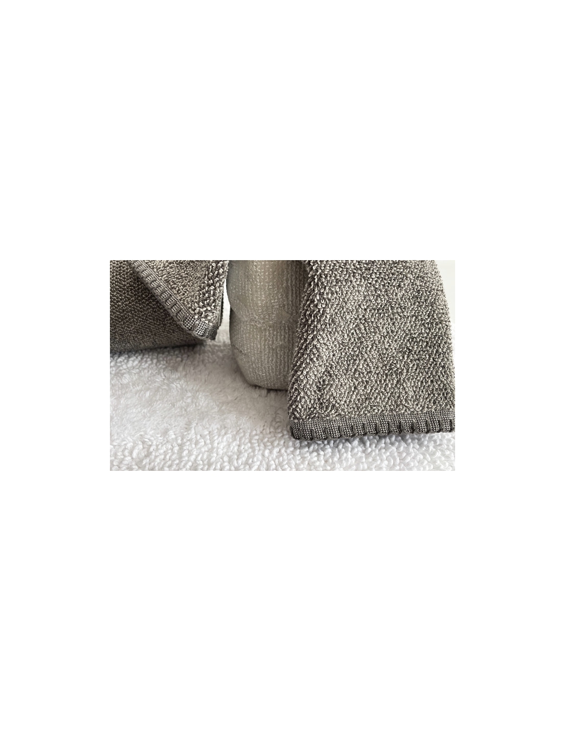 Ensemble de serviettes trois pièces. Serviettes avec bordure à coutures contrastantes.