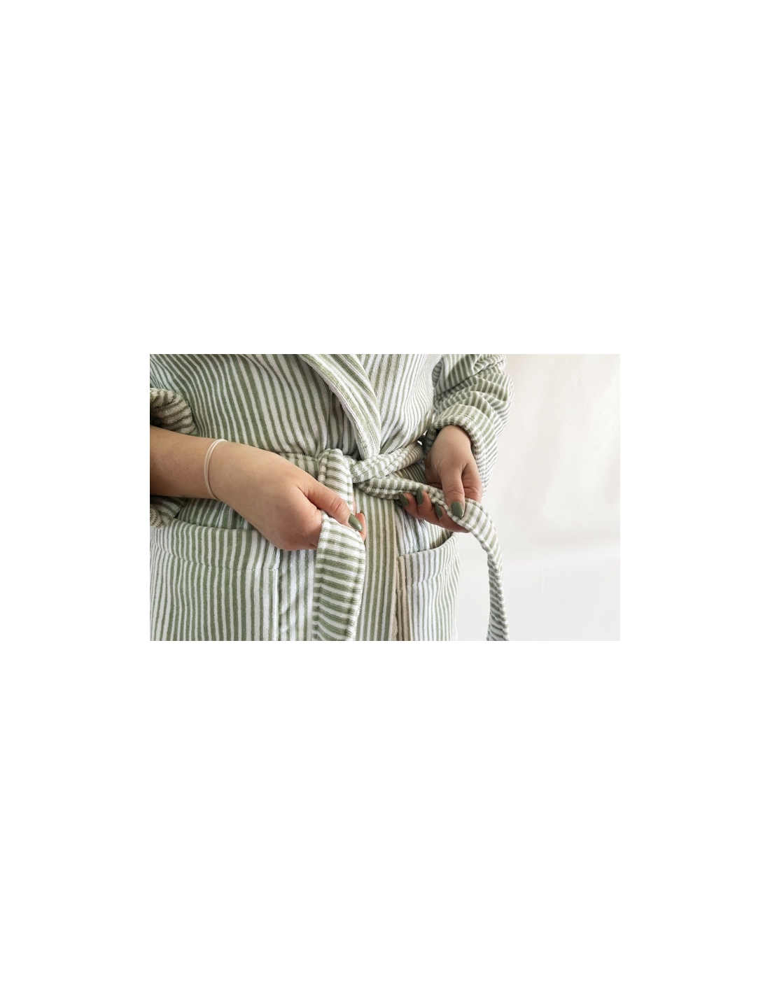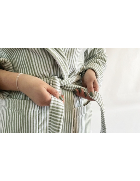 Roupão de banho em qualidade de microalgodão altamente absorvente e confortável, com tacto aveludado no lado exterior.