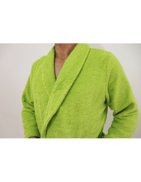 Roupão de banho em algodão, com fabrico ketten. Com este sistema de fabrico, a argola do fio não se solta e não prende.
