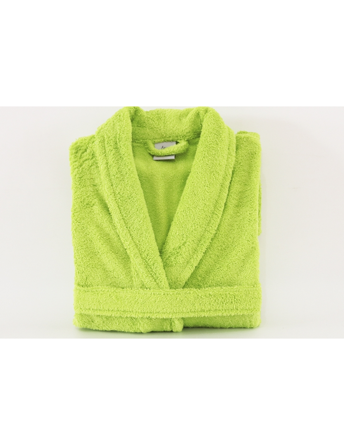 Roupão de banho em algodão, com fabrico ketten. Com este sistema de fabrico, a argola do fio não se solta e não prende.