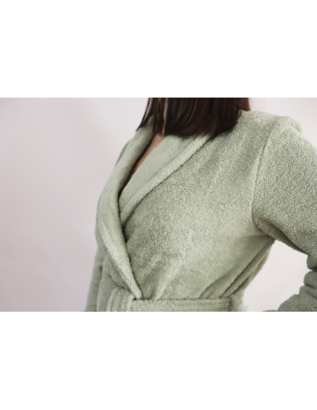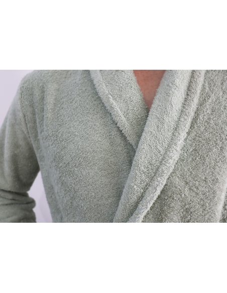 Roupão de banho em algodão altamente absorvente e confortável, com fabrico ketten. Com este sistema de fabrico, a argola do fio não se solta e não prende.