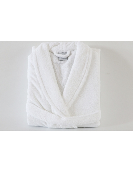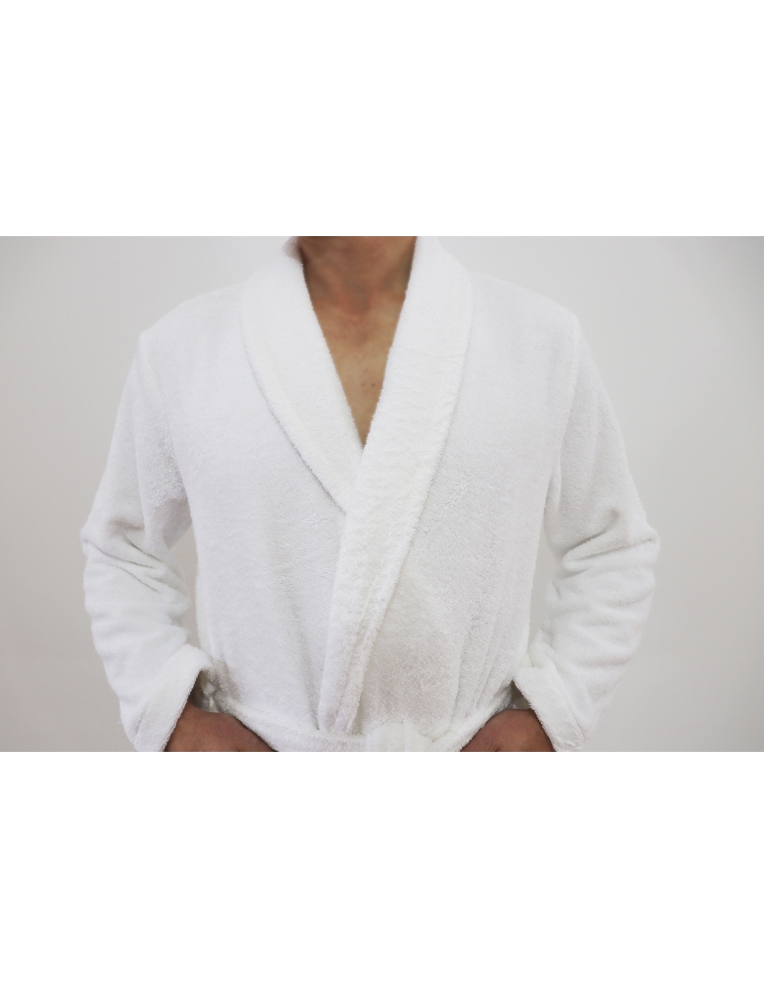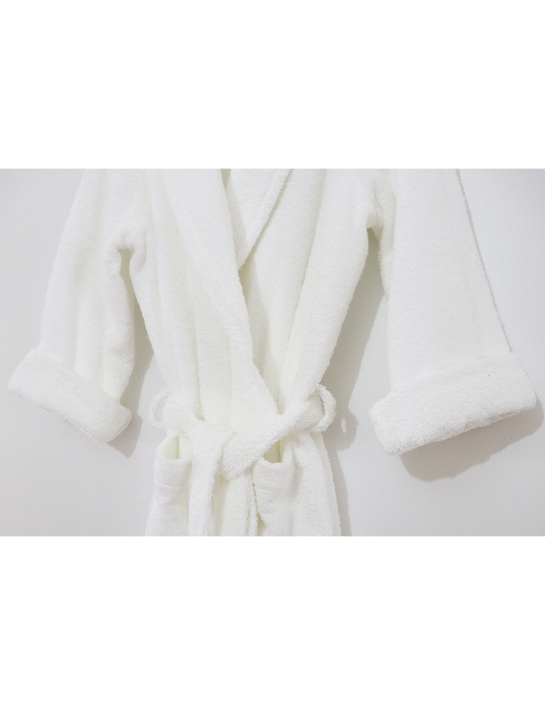 Roupão de banho em algodão altamente absorvente e confortável, com fabrico ketten. Com este sistema de fabrico, a argola do fio não se solta e não prende.