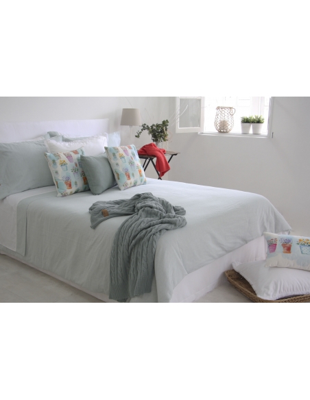 Saco de edredão 100% algodão com desenho e avesso em percal 200 fios, assim como as almofadas nos diferentes tamanhos.