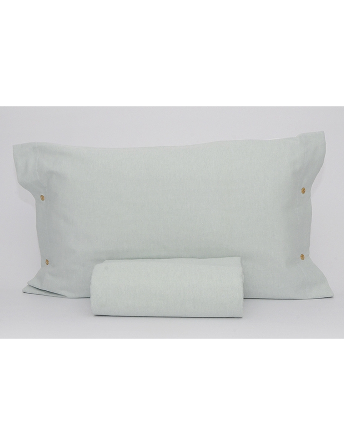 O saco fecha com pala de 0,45 cm na parte inferior para colocar debaixo do colchão ou fazer envelope, evitando que deslize. E as almofadas fecham com botões nos dois lados.