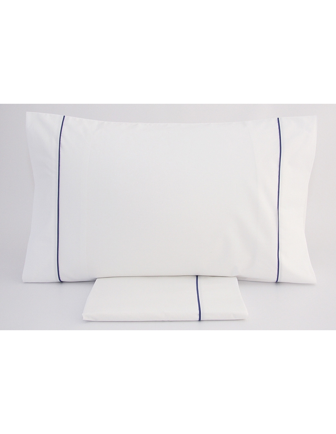 Lençol de cima c/almofadas em 200 fios percale friso azul escuro