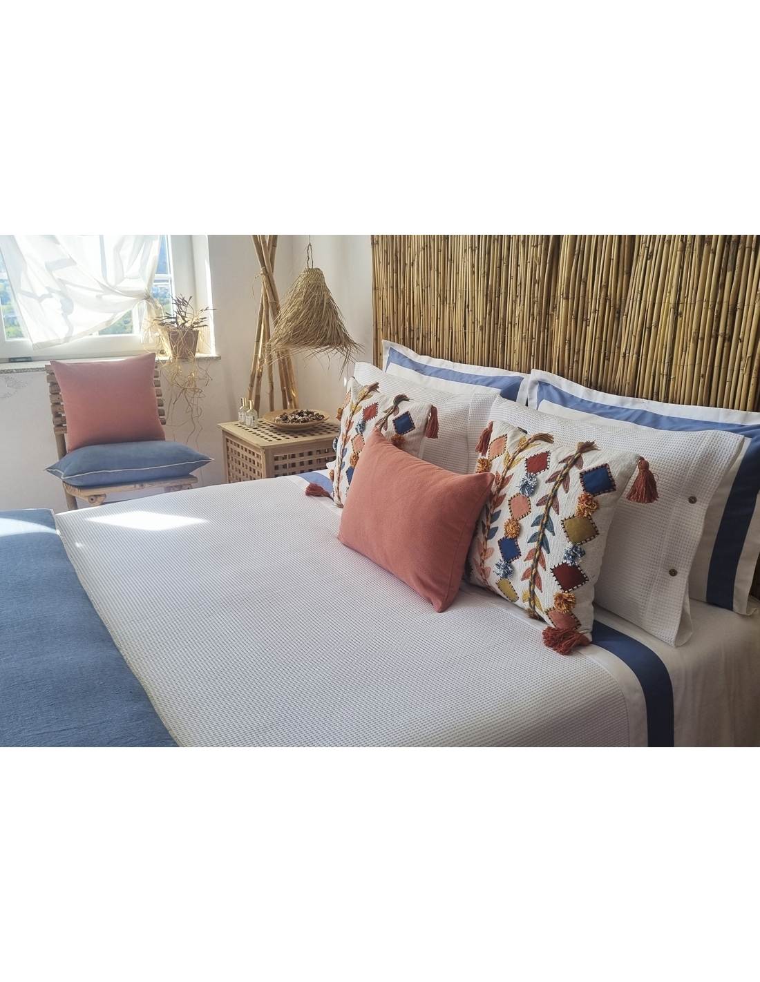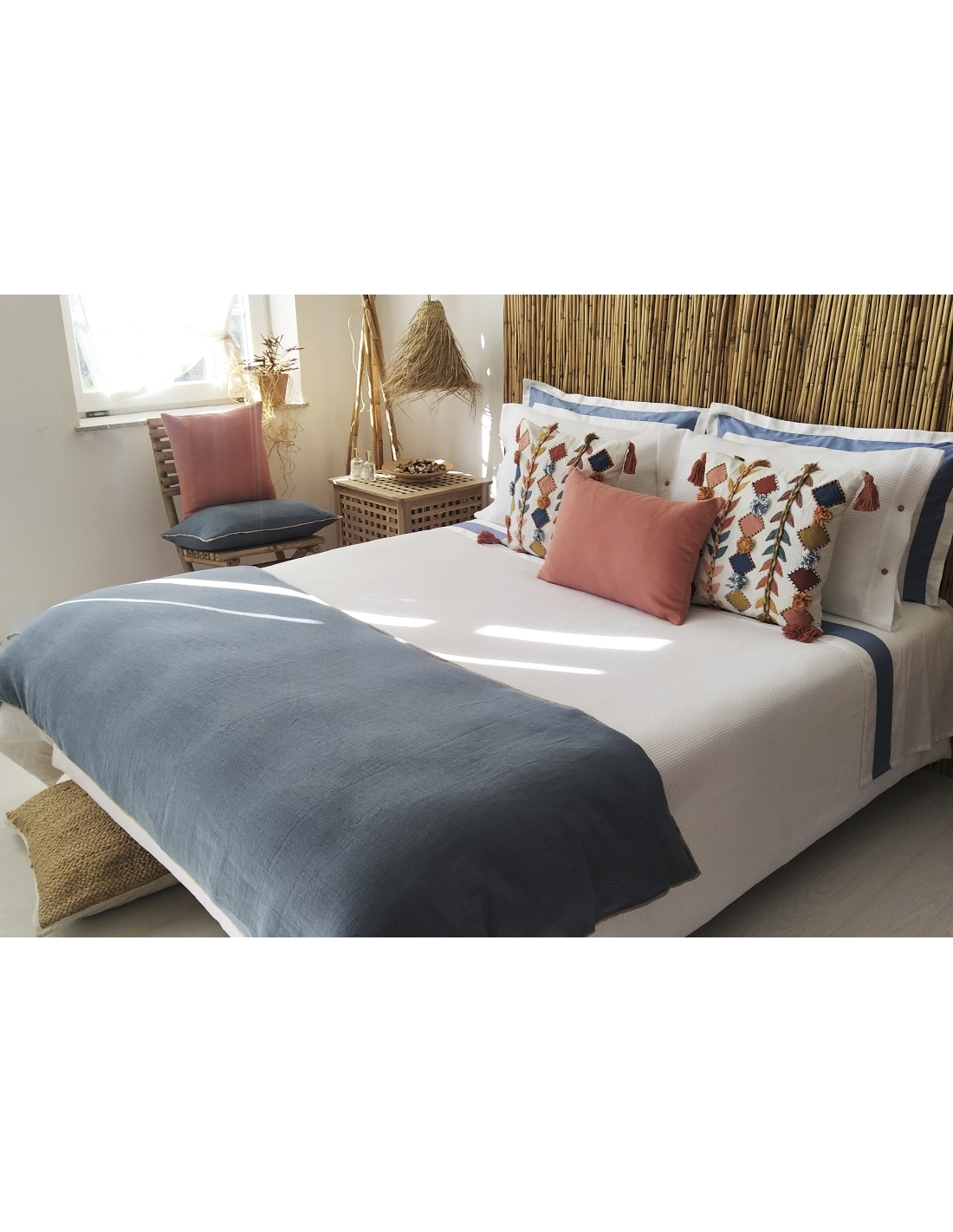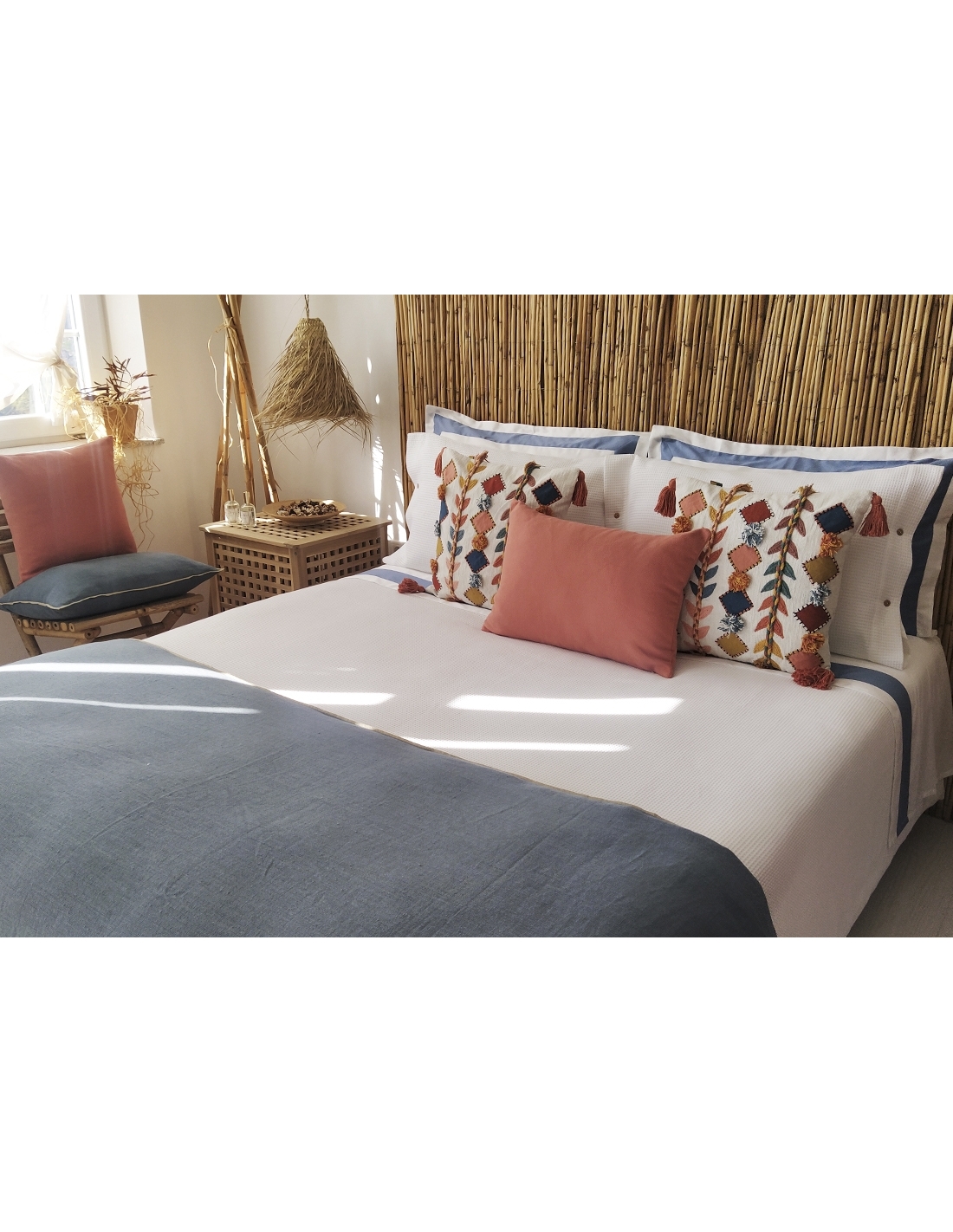 Saco de edredão 100% algodão com desenho e avesso em percal 200 fios, assim como as almofadas nos diferentes tamanhos.