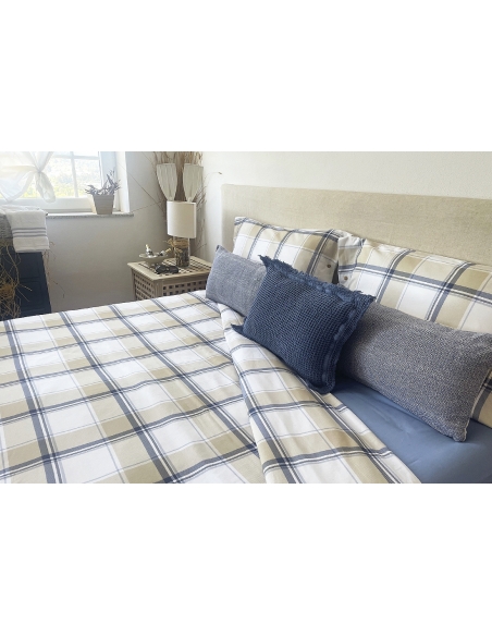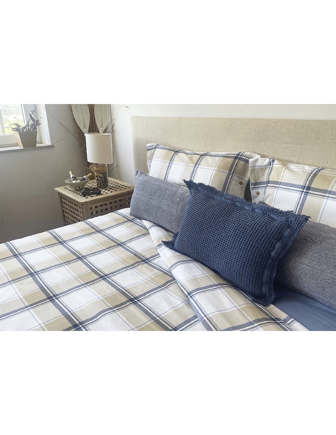 Saco de edredão 100% algodão com desenho e avesso em percal 200 fios, assim como as almofadas nos diferentes tamanhos.