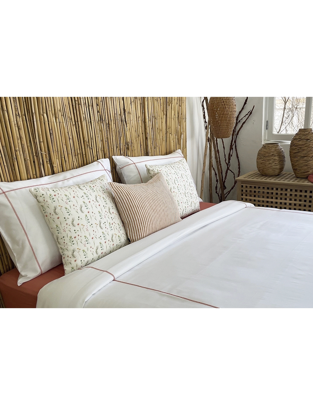 CETIM 300 fios 100% algodão penteado e mercerizado, com tratamento mecânico. Com estas caraterísticas obtemos um tecido resistente, macio e suave e fácil de passar a ferro.