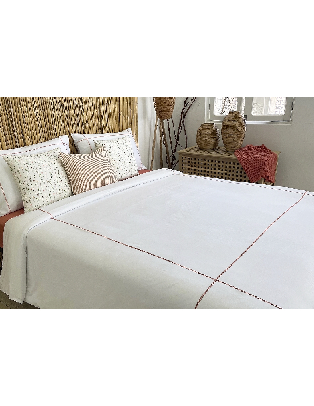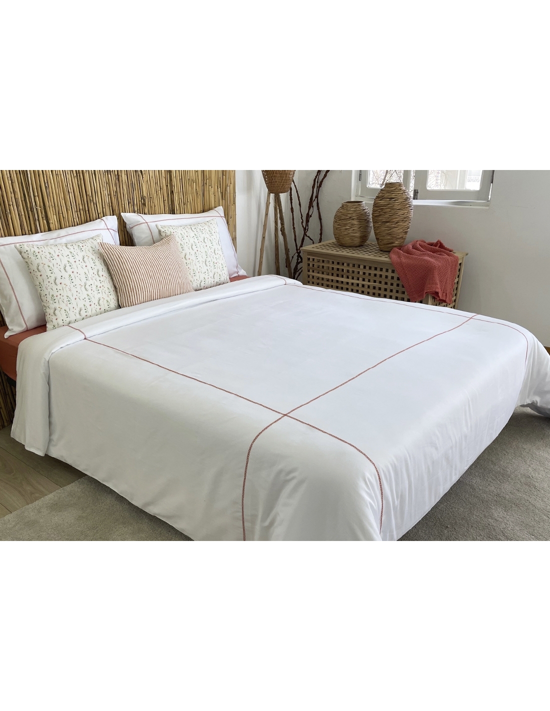 CETIM 300 fios Conjunto saco edredão Cross terracota