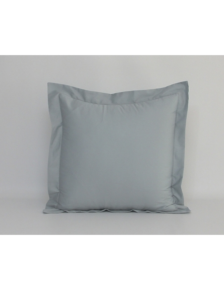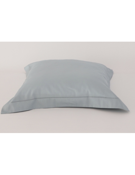 Capa de almofada com ponto ajour. As almofadas quadradas têm bordado a toda a volta com pala de 5cm e fecham com uma aba. As almofadas retangulares têm aplicação do bordado nos dois lados e fecham com duas abas.