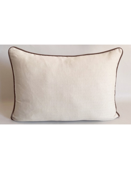 Capa de almofada com remate de cordão a toda à volta.