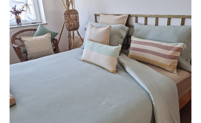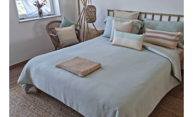 Saco de edredão 100% algodão com desenho e avesso em percal 200 fios, assim como as almofadas nos diferentes tamanhos.