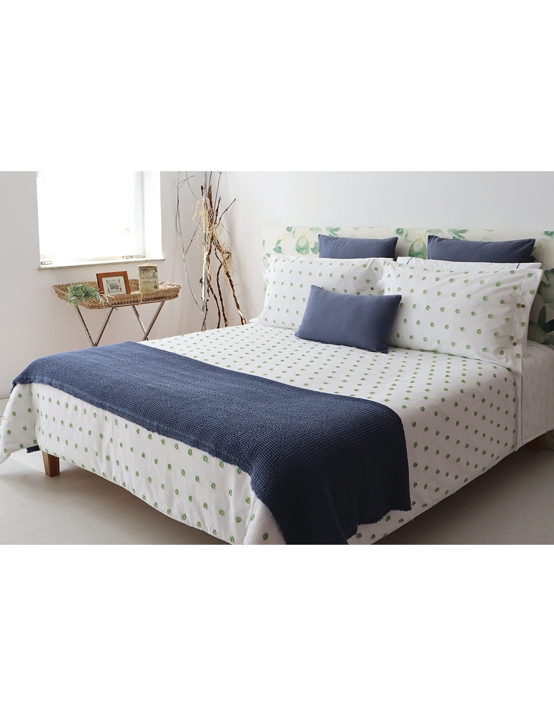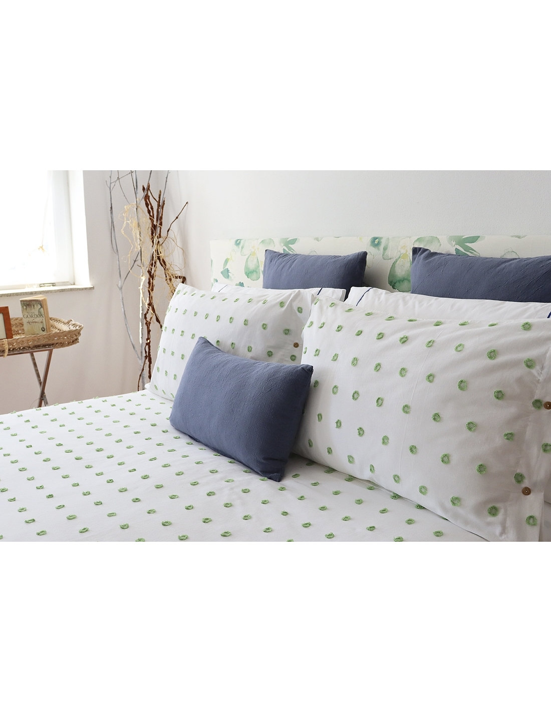Saco de edredão 100% algodão com desenho e avesso em percal 200 fios, assim como as almofadas nos diferentes tamanhos.