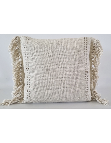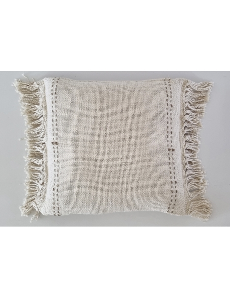 Capa de almofada de tecido macio, trabalhado com técnica irregular que combina fibra de juta com algodão. Esta fusão de materiais naturais dá um toque único e especial, tornando-a no apontamento perfeito para qualquer decoração.