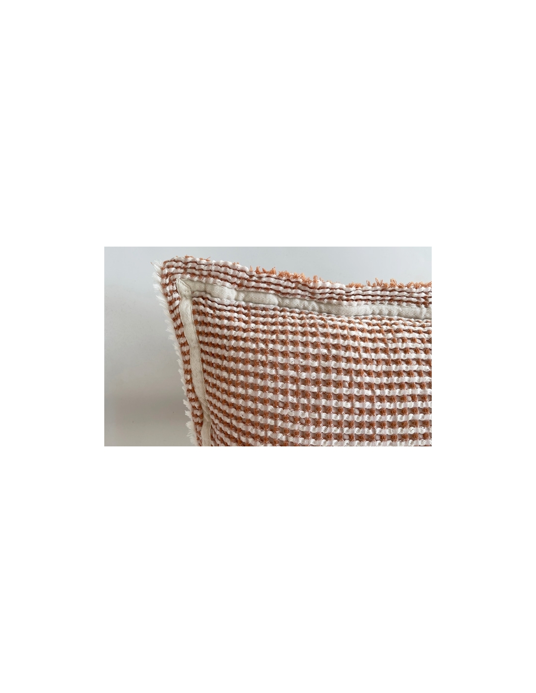 Capa de almofada com ponto "ninho de abelha" lavada e pré-encolhida, o que a torna muito agradável ao tacto e prática, pois não encolhe ao lavar.