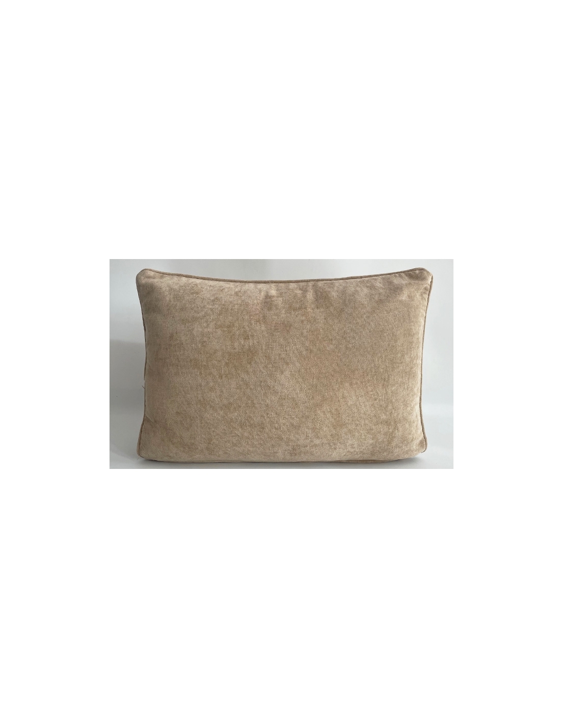 Almofada lisa e com tacto suave, efeito pele de pêssego. Possui fecho éclair invisível, podendo ser utilizada dos dois lados.