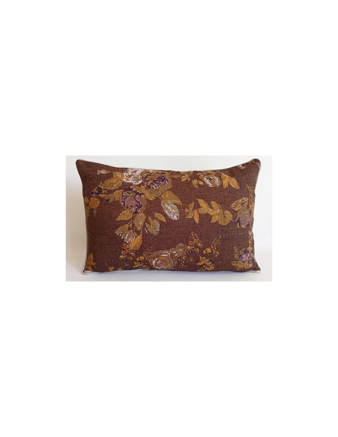 Capa de almofada estampada, com verso liso e aplicação de cordoné a toda a volta. Possui fecho na parte traseira.