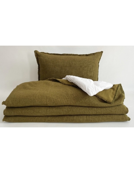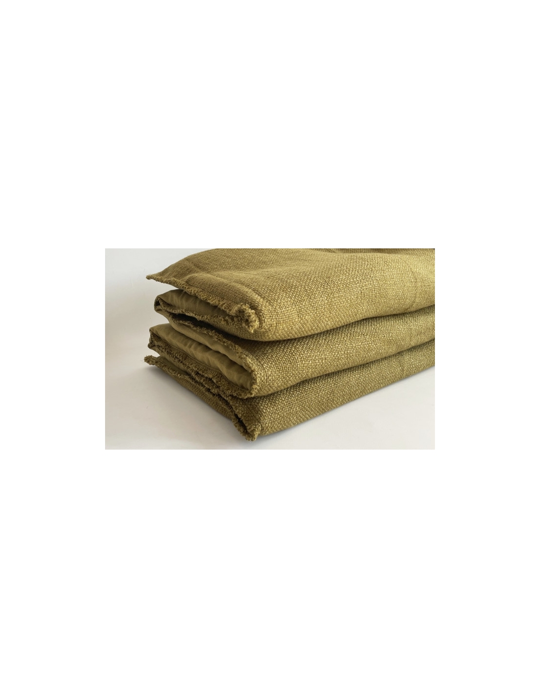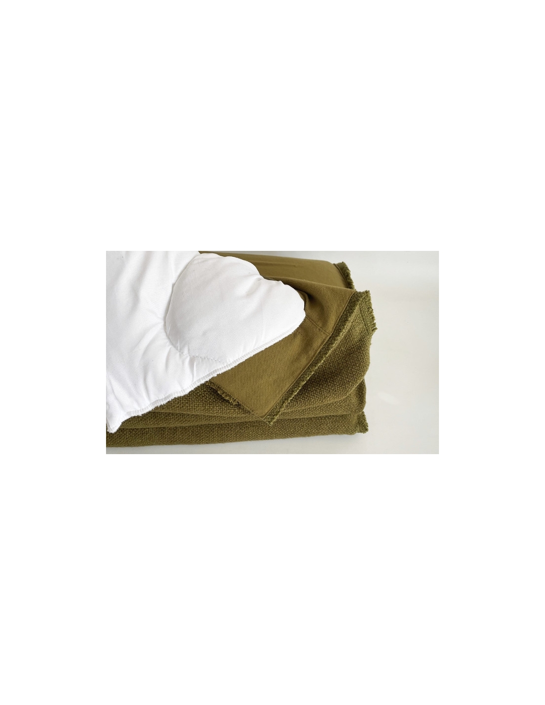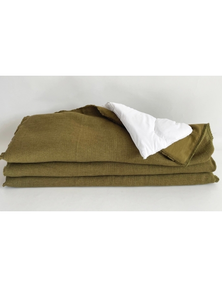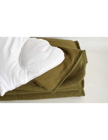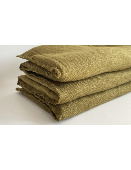 Plaid com duas faces. Possui franja a toda a volta e fecho no avesso para introduzir ou retirar o recheio.