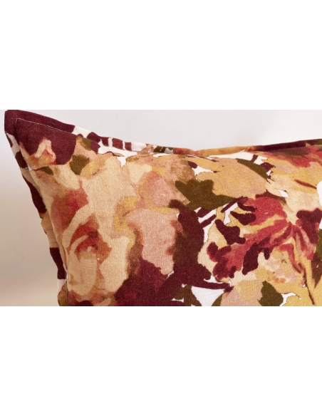 Capa de almofada estampada, com verso liso e fecho na parte traseira.