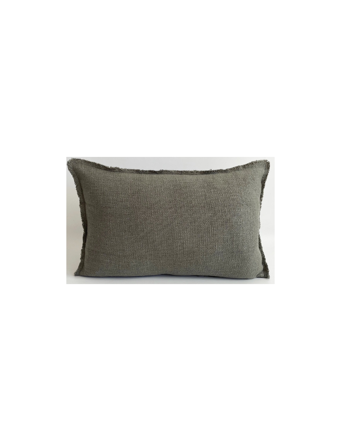 Capa de almofada lisa com remate de franjas a toda a volta. É reversível e possui fecho éclair invisível.
