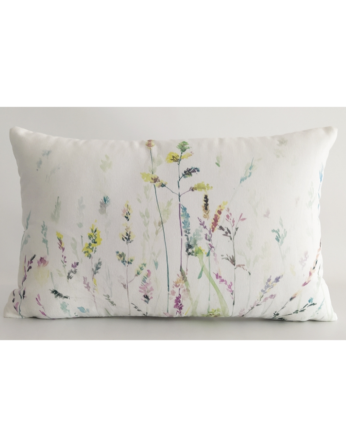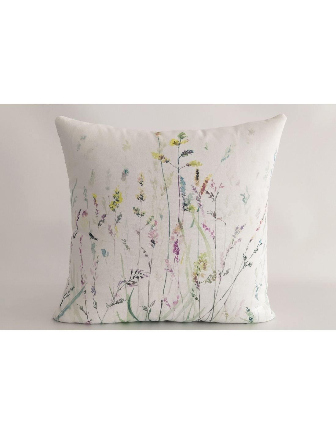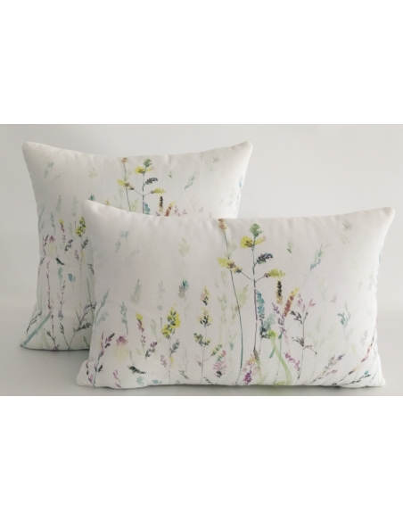 Capa de almofada de algodão com estampado digital na frente e verso liso, igual à cor de fundo. Possui fecho éclair invisível num dos lados.