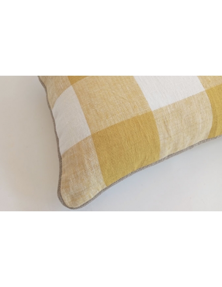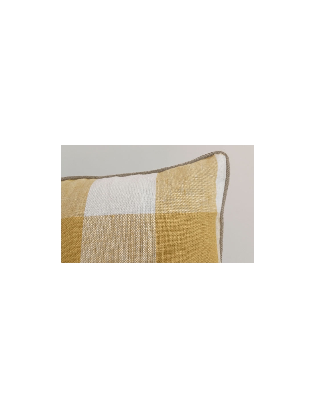 Capa de almofada estampada e com cordão a toda a volta. É reversível e possui fecho éclair invisível.
