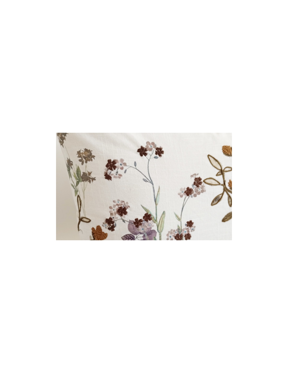 Capa de almofada estampada e com detalhes bordadados em relevo.