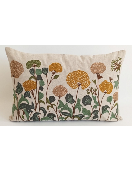 Capa de almofada estampada e com detalhes bordadados em relevo.