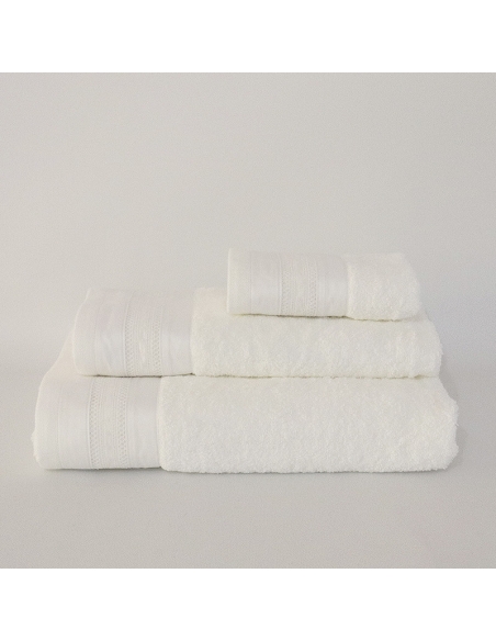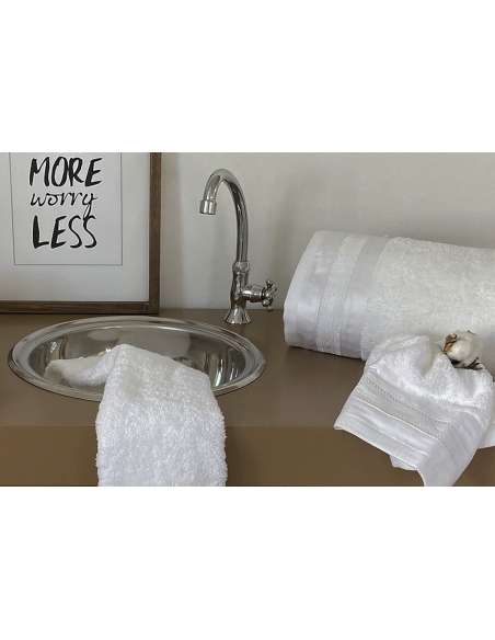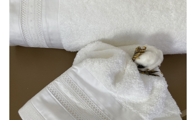 Jogo de toalhas com aplicação de bordado em tecido de cetim 500fios.