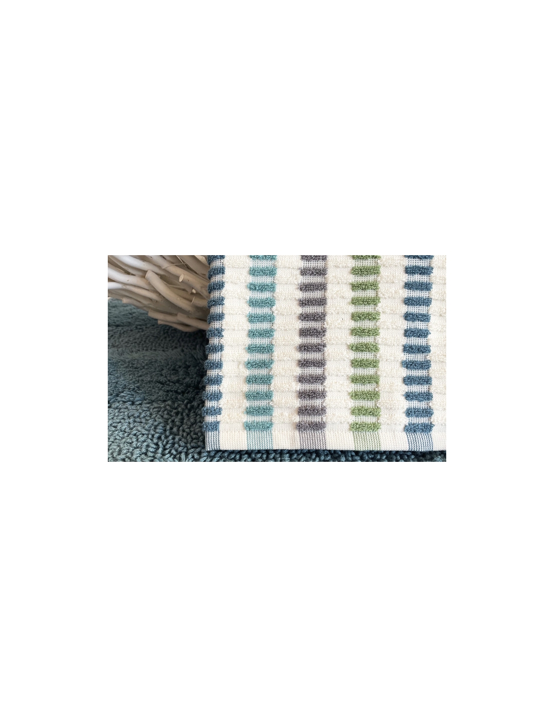 Conjunto de toalhas reversível, em algodão macio com acabamento texturado.