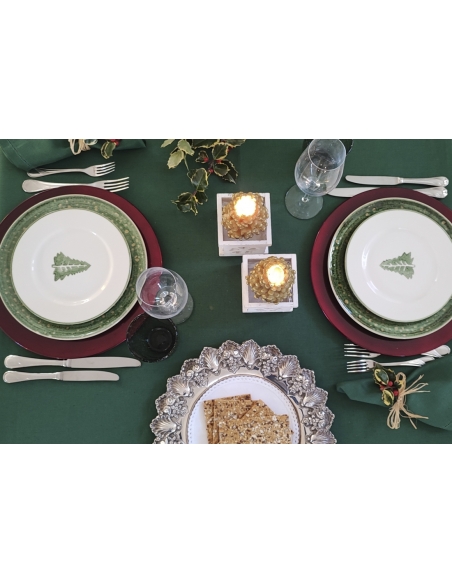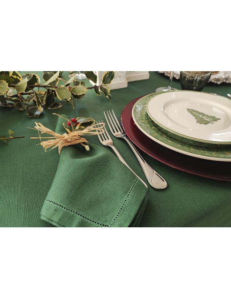 Toalha de mesa lisa com ponto aberto a toda a volta.