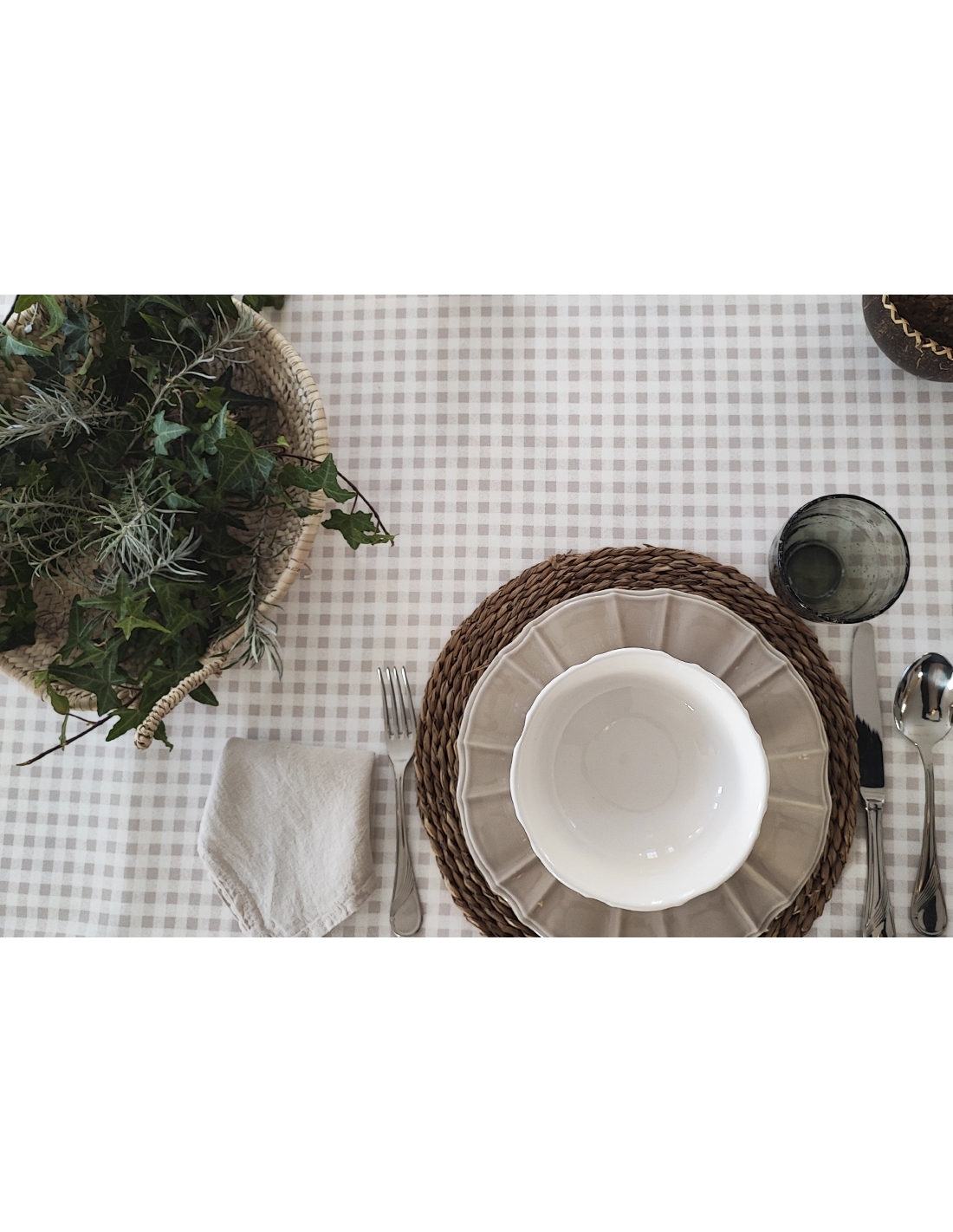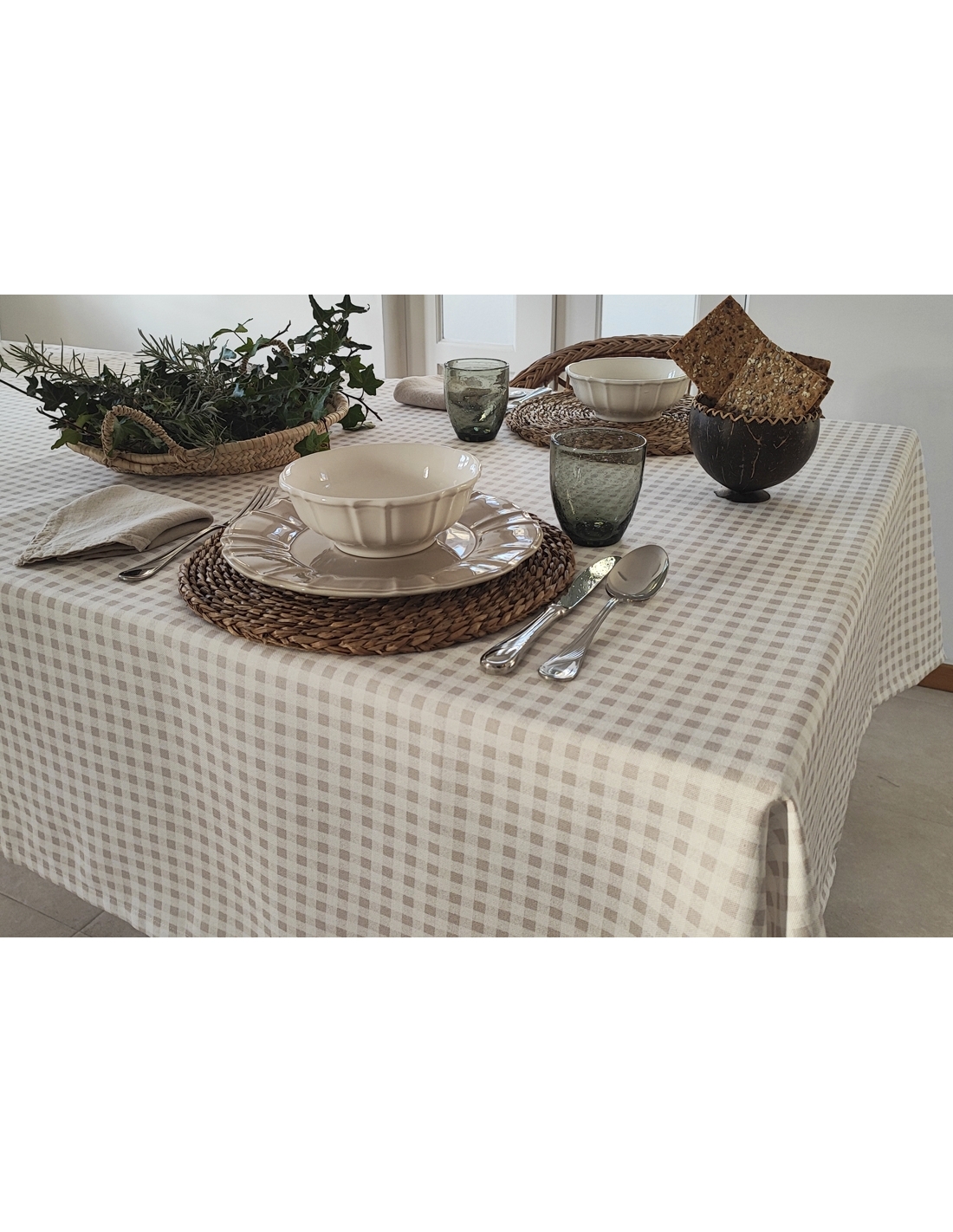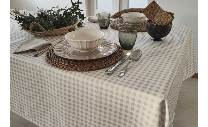 Toalha de mesa Vichy bege