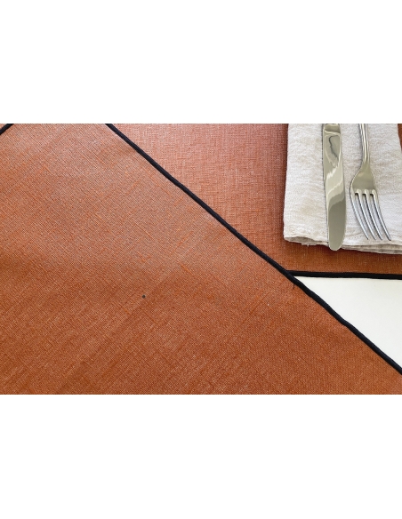 Individual em linho revestido com um tratamento que confere ao tecido um toque plastificado o que o torna repelente. Não precisa de passar a ferro.