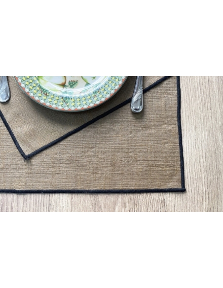 Individual em linho revestido com um tratamento que confere ao tecido um toque plastificado o que o torna repelente. Não precisa de passar a ferro.
