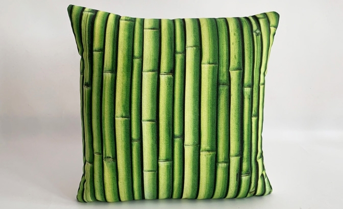 Capa de almofada de algodão com estampado digital na frente e verso liso, igual à cor de fundo. Possui fecho éclair invisível num dos lados.