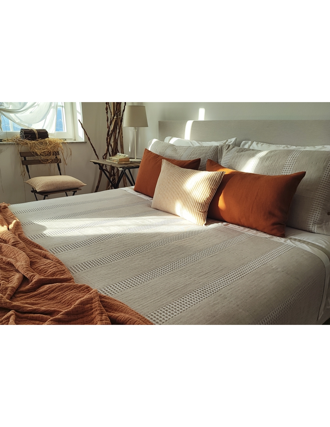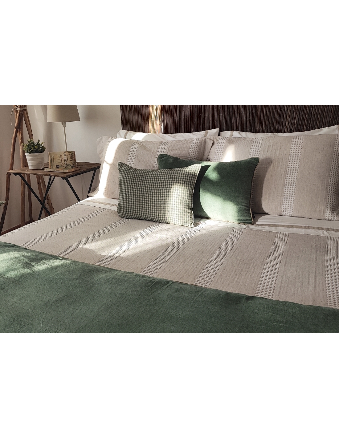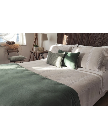 Saco de edredão 100% algodão com desenho e avesso em percal 200 fios, assim como as almofadas nos diferentes tamanhos.