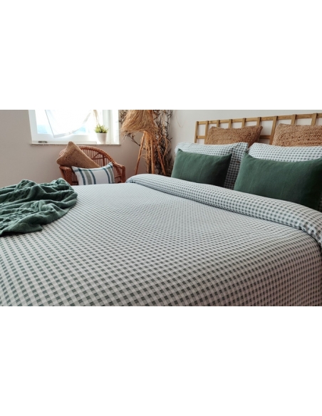 Saco de edredão 100% algodão com desenho e avesso em percal 200 fios, assim como as almofadas nos diferentes tamanhos.